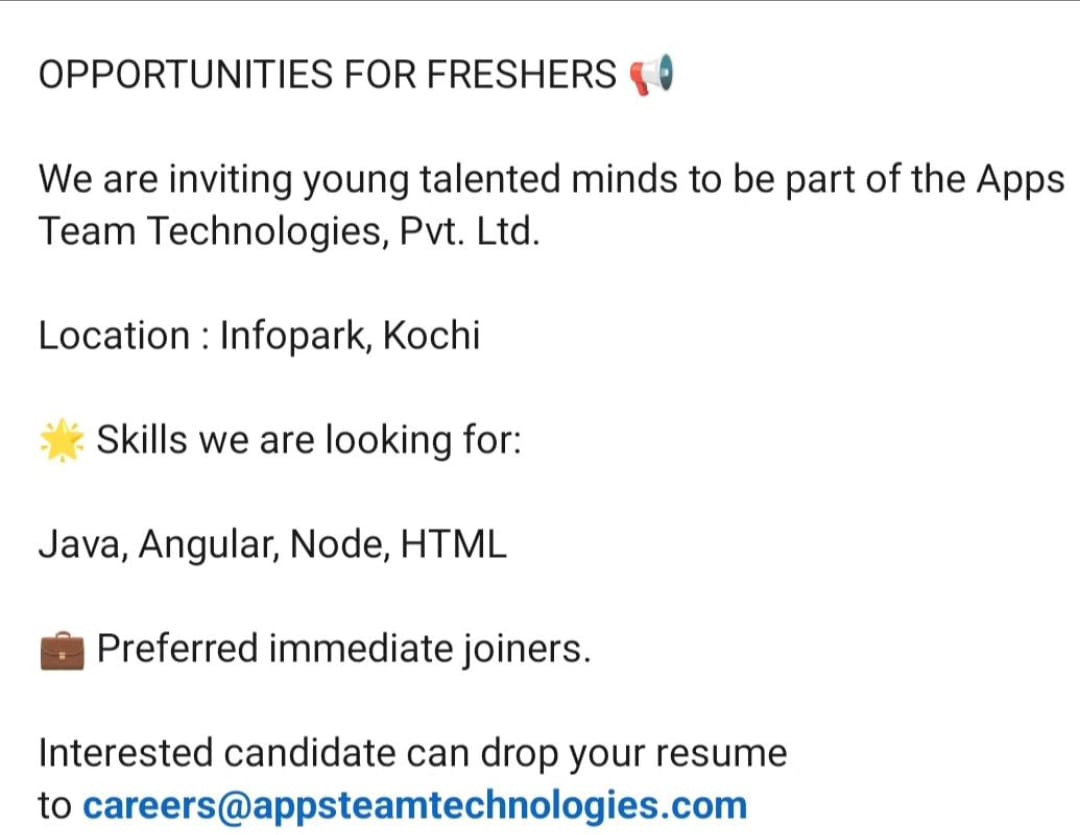 OPPORTUNITIES FOR FRESHERS