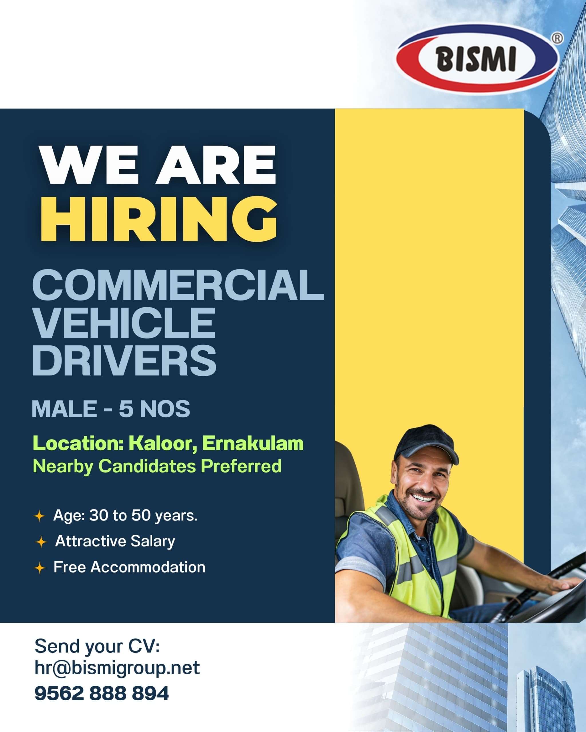 Send your resume to careers@almadinagroup.ae with subject line as Drivers