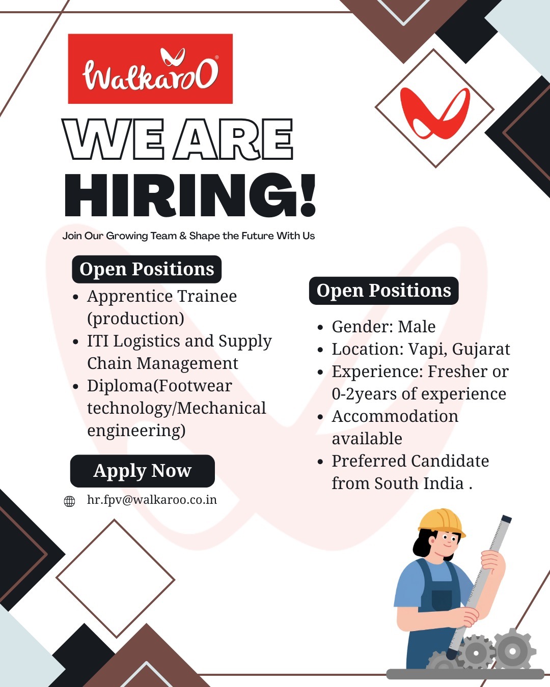 Job Title:BE, BTECH, DIPLOMA, ITI