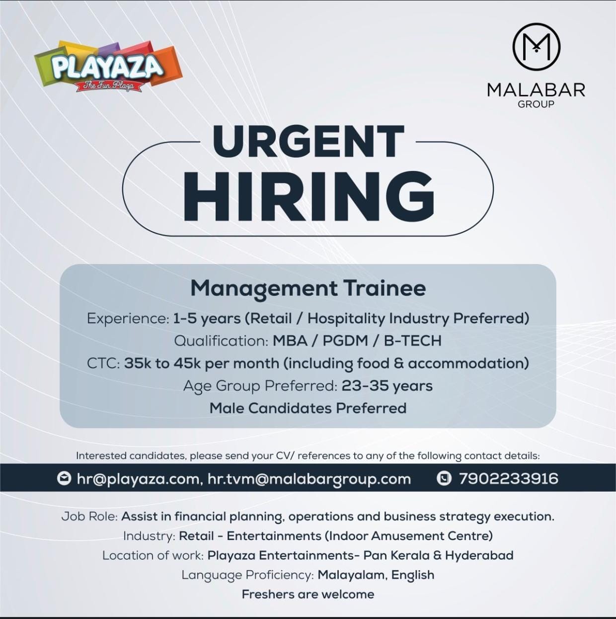 Job Title:MULTIPLE JOB VACANCIES