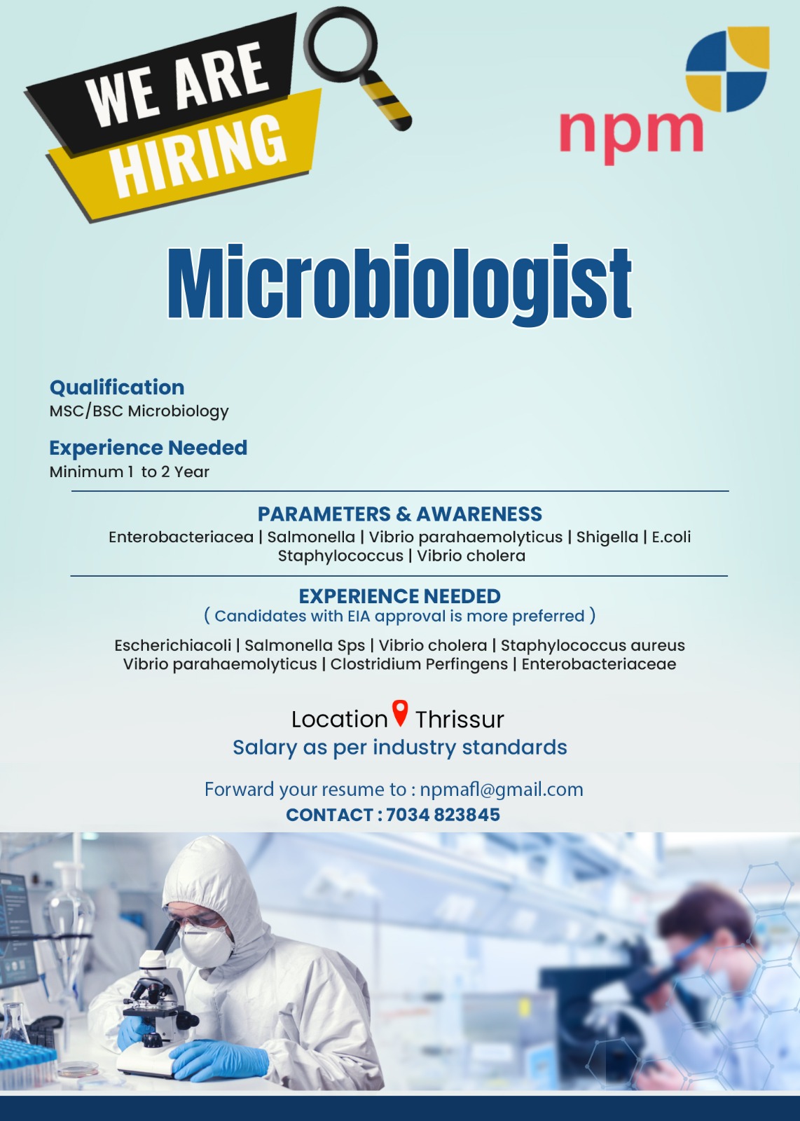 Send your resume to hr.trivestcr@gmail.com with subject line as Lab Technician