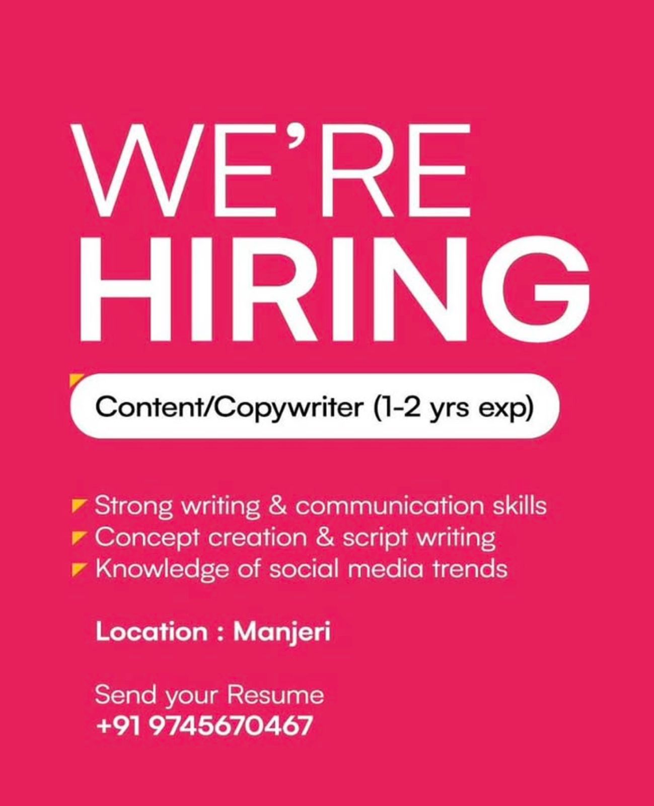 Send your resume to: jobsbrij2020@gmail.com